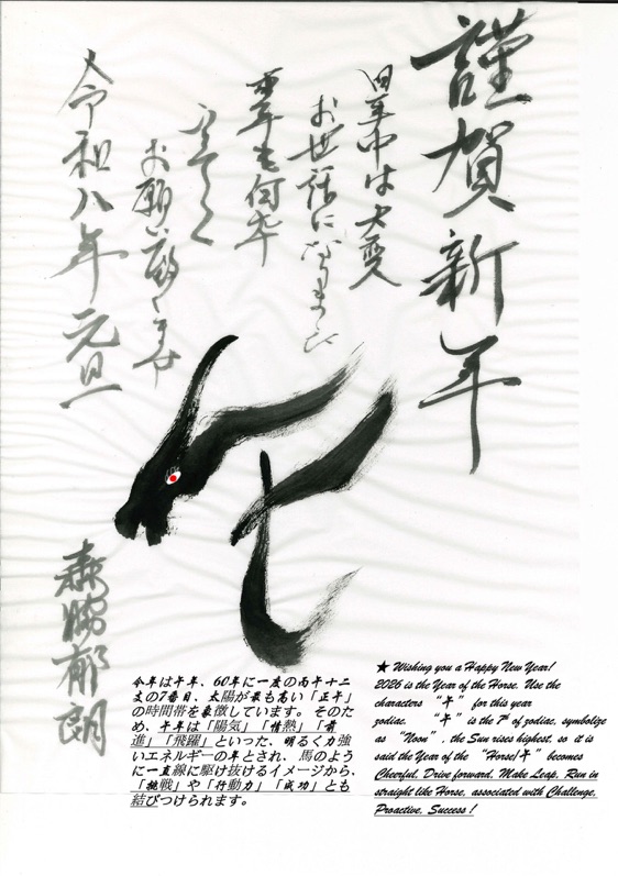 今年の干支は”午”、「十二支の7番目で「馬」が象徴する、活力・行動力・前進・情熱に満ちた年で、2026年は、”丙午(ひのえうま)”の年、特に情熱と推進力に満ち、大きな成長のチャンスがある一方、勢い余らないよう冷静な制御も求められる程です」との事です。